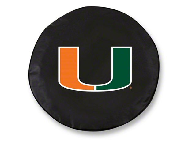 Reliable Weather-Blocking Action. Installing this Black University of Miami of Florida Spare Tire Cover helps safeguard your spare tire from harsh weather elements. By hiding your tire’s exposed parts, it won’t be directly hit by the sun’s harmful UV rays or scratched by various road hazards such as rocks and twigs. Plus, this spare tire cover is printed with the University of Miami of Florida logo, allowing you to protect your tire in style.