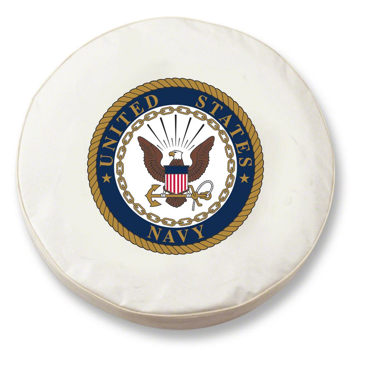 Superior Construction. This spare tire cover is crafted using commercial marine-grade vinyl fabric for guaranteed quality and durability. It is also printed with a UV-resistant U.S. Navy logo, allowing it to exhibit more vibrant colors. Even if the cover is frequently exposed to the sun’s harmful rays, its printed logo won’t easily fade. Furthermore, this spare tire cover is tailored with a bead-welt seam, which adds a neater look and increased strength.