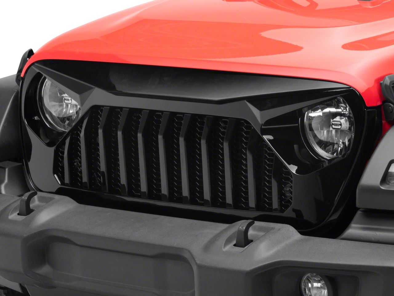 Application. This American Modified Vader Grille with Mesh in Glossy Black is created to fit 2018-2026 Jeep Wrangler JL models.