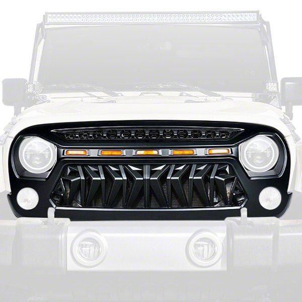 Application. The Venom Series Grille with LED Running Lights fit 2007-2018 Jeep Wrangler JK.