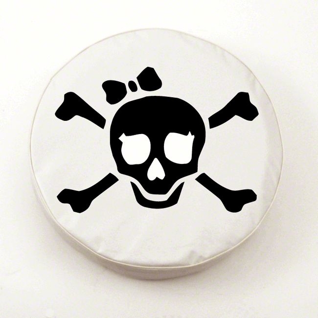 For the Ladies with a Spirit of Adventure. If you’re a lady Jeep owner who regularly hits the trails, this White Pirate Girl Spare Tire Cover in White Vinyl is just for you. This white vinyl spare tire cover features the Pirate Girl graphic rendered in black. This black over white color scheme makes the design really stand out wherever you drive. And with this cover’s high-strength build, you can be sure of total spare tire protection when you hit the trails.