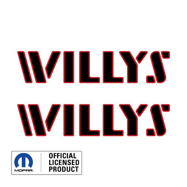 Durability and Style. Transform the appearance of your Jeep Wrangler with the WILLYS Hood Graphic; Black with Red Outline. Crafted from high-quality vinyl, this hood graphic is designed to withstand the elements, including UV rays, ensuring your Jeep's look remains pristine in any weather condition. The durable adhesive backing guarantees a secure fit, while the precision-cut design ensures a perfect match for the contours of your Wrangler's hood.