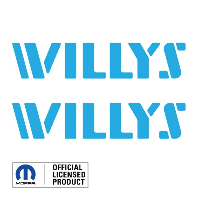 Authentic Jeep Heritage Upgrade. The WILLYS Logo is an official emblem designed to add a touch of authentic Jeep styling to your Wrangler JK or JL. With its light blue finish, this logo provides a distinctive and eye-catching enhancement that celebrates Jeep's classic heritage.