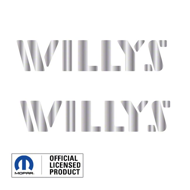 Construction and Appearance. Crafted with precision, these decals boast a metallic silver finish that complements the rugged design of your Jeep. As officially licensed Mopar products, they meet the highest standards of quality and durability. The Willys logo design is both stylish and classic, making these decals a perfect addition to your vehicle.