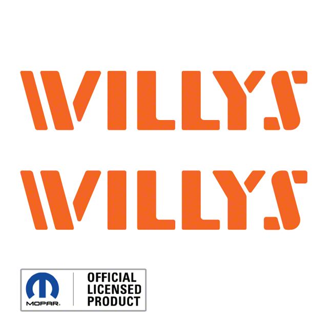 Show Your Jeep's Heritage. Step back in time and ignite your Jeep's adventurous spirit with the iconic orange WILLYS Logo. This isn't just a decal; it's a tribute to the legendary lineage that defines your Wrangler. The bold design and classic font instantly transport you to the golden age of off-roading, making a powerful statement about your vehicle's heritage and your passion for the open road.