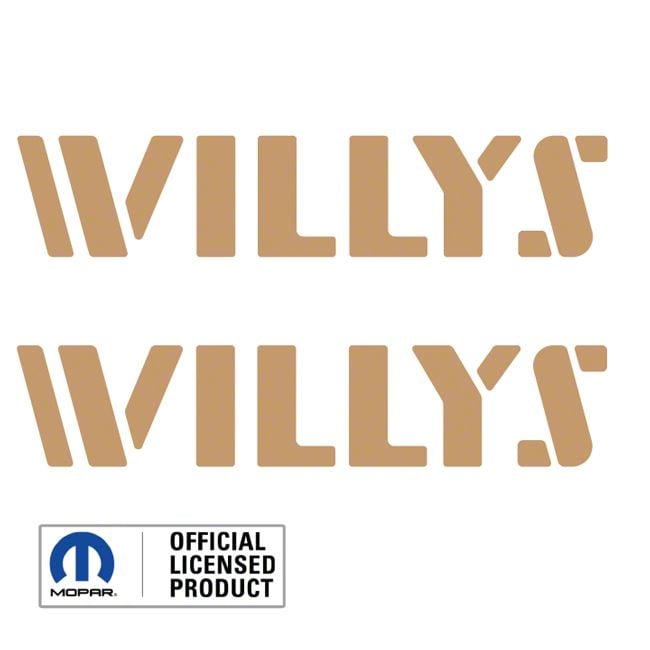 Heritage-Inspired Exterior Accent. The WILLYS Logo decal brings a touch of classic military heritage to your Jeep Wrangler, paying tribute to the vehicle's rugged roots. With a tan/beige design, it delivers vintage style that stands out on modern builds while honoring the iconic WILLYS legacy.
