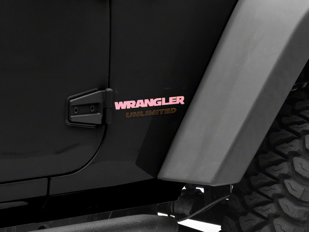 Application. This Jeep Licensed by RedRock Wrangler Side Logo; Pink is designed to fit 1987-2018 Jeep Wrangler YJ, TJ and JK models. Sold individually.