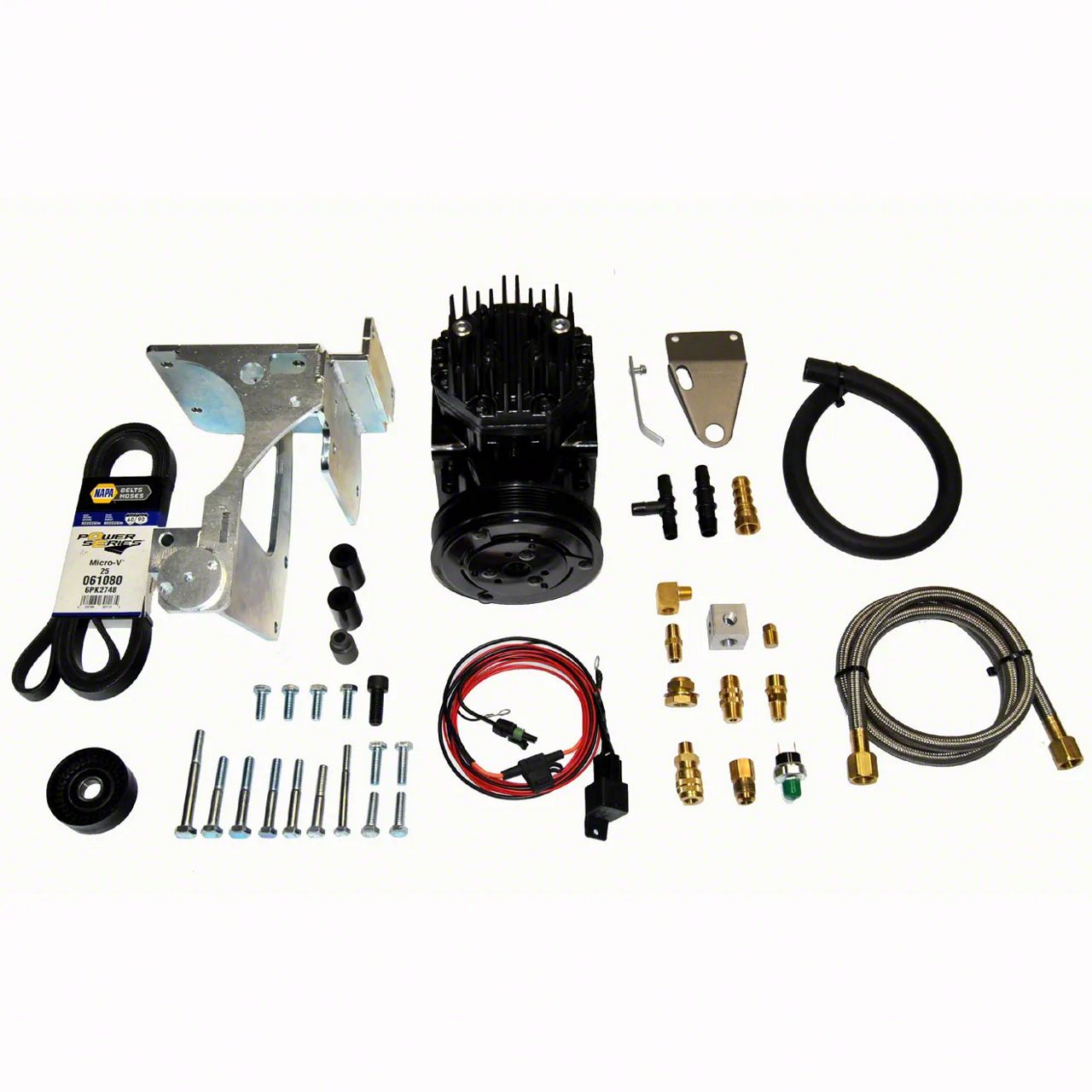 Complete Air Solution. The York Mini On Board Air Kit is an essential upgrade for off-road enthusiasts and anyone requiring a reliable air supply. This kit includes a 10cfm compressor with a wet crankcase, ensuring efficient operation under various conditions. It’s designed to fit seamlessly into your 4.0L Jeep Wrangler TJ with A/C, integrating with the factory air box and using the existing alternator and belt tensioner mounts.
