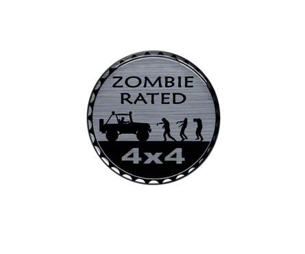 Quirky Accent. This Rated Badge domed surface and circular design is a superior upgrade to a typical decal. Meanwhile, its “Zombie Rated 4x4” lettering with zombie attacking a Jeep graphic adds a bit of your quirky personality to your vehicle.