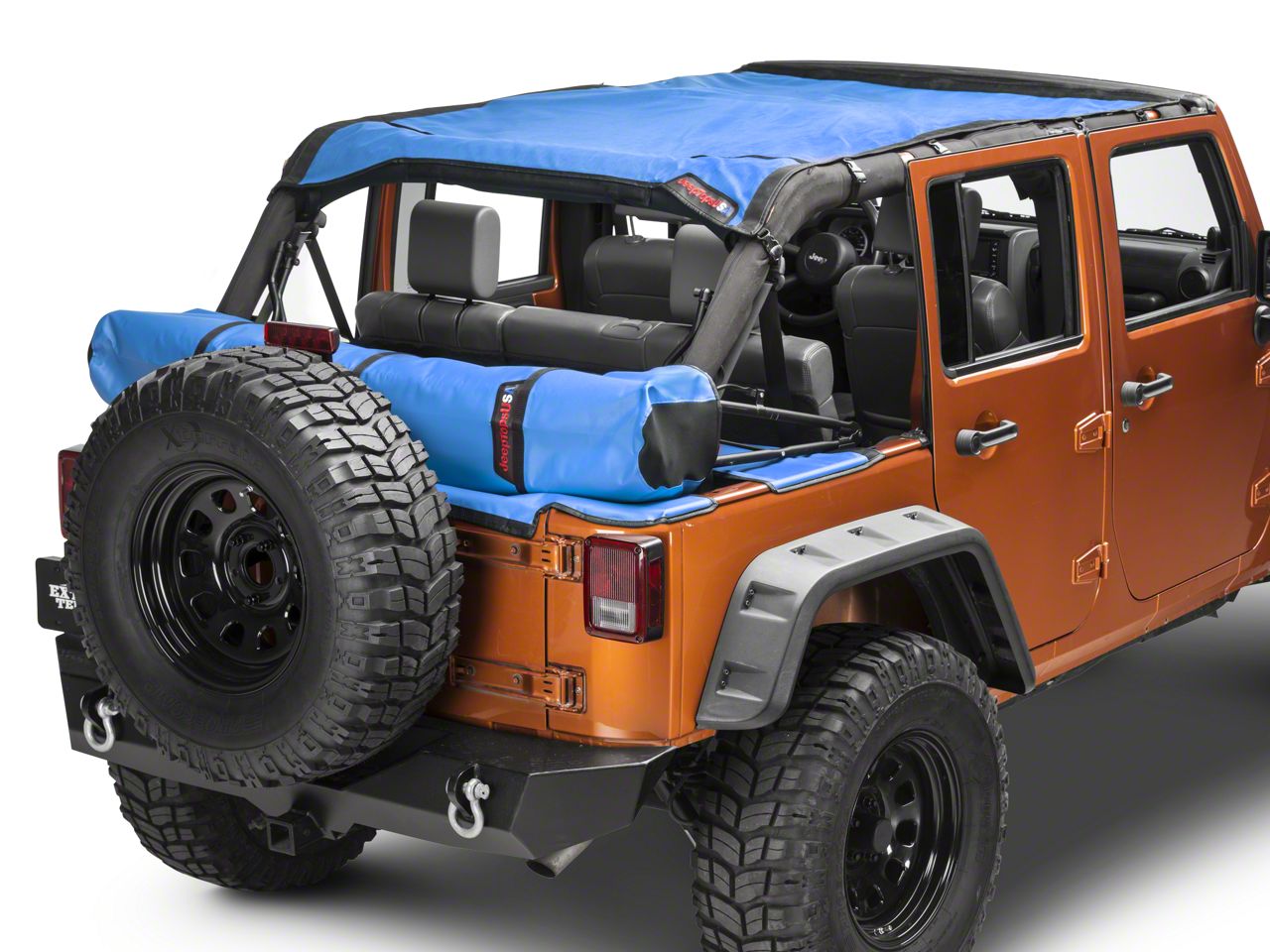 Beautiful Blue Color. You can upgrade your awesome rig with a J Tops USA Safari Shade Top Set w/ Tonneau & Boot. This soft top is specially designed to provide your Jeep with the coverage it needs, when it is most needed. The top comes in a beautiful cool blue color that will add flare to your Jeep. Made with full coverage in mind, you can expect the innovative design of this soft top to provide your Jeep with the protection it needs from trail debris and dust. Fortunately, the J Tops USA Safari Shade Top Set w/ Tonneau & Boot is designed with the off roader and the daily driver in mind. These soft tops offer convenience and you can simply unsnap and fold it back whenever you need to.