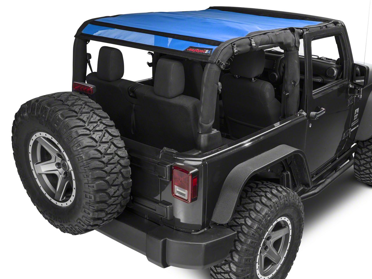 Application. The blue JTopsUSA Mesh Shade Top fits all 2007-2018 Jeep Wrangler JK 2-door models.