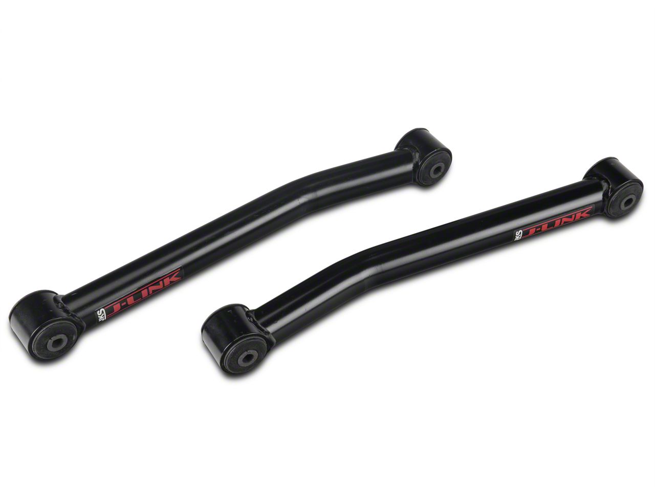 Fixed Length. The JKS Fixed Length Front Lower Control Arms are designed to provide superior strength. They mount directly to your factory control arm mounts and can be used with either OEM upper arms or with JKS's Adjustable Uppers (sold separately) for precise adjustments and impressive strength. These Lower Control Arms are 3/8 inch longer than stock, and will increase and help correct caster for Wranglers with 0-4.5 inches of suspension lift. They're suitable for the daily driver and off road enthusiast alike thanks to quiet riding rubber bushings.