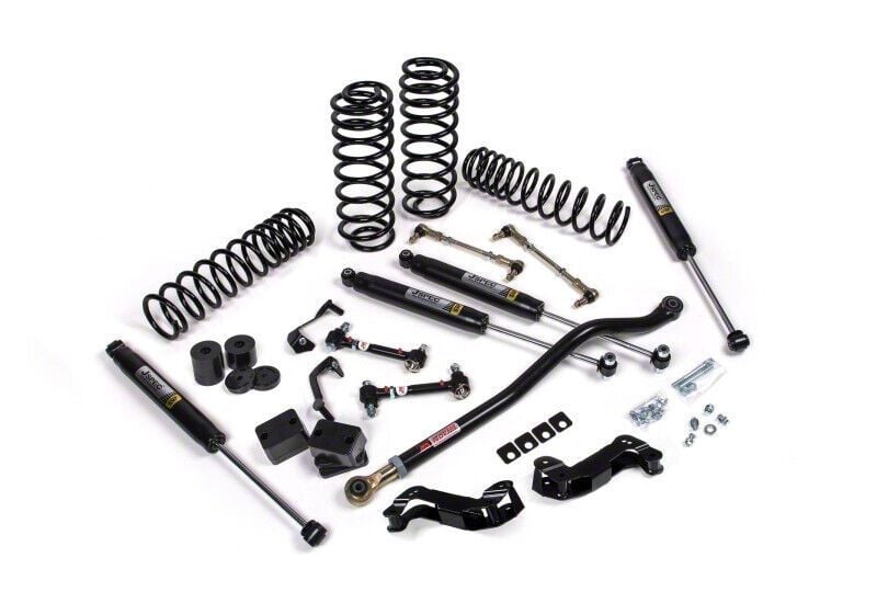 Description. Improve the ground clearance and off road capability of your 4 Door Jeep Wrangler JL with the JKS J-Kontrol 2.5" lift kit. The J-Kontrol lift retains your OE control arms, but steps up the rest of your suspension. J-Kontrol kits feature dual rate coil springs, adjustable front track bars specially-valved gas shocks, sway bar Quicker Disconnects, and front control arm correction brackets as well as all other hardware to complete the 2.5" lift. The J-Kontrol 2.5" lift suspension kit is the perfect daily driver, weekend wheeler system. J-Kontrol system's front control arm correction brackets further enhance the on-road handling by flattening out the control arm to more closely mimic factory angles while correcting caster. With a matched combination of parts, J-Kontrol systems offer very solid performance without compromising daily-driver comfort. If you spend a good amount of time on the trails, take control with J-Kontrol.