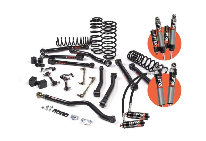 Improved Performance. Made for the Jeep Wrangler JL 4-Door models, excluding 4xe and Rubicon 392 models, this JKS Manufacturing J-Krawl Standard Rate Coil Suspension Lift Kit comes in a glossy black and matte black finish. Adjustable and built to give your ride improved articulation and ride quality, this lift kit gives your ride 2.50 inches of lift and includes FOX 2.5 performance elite series shocks, upper and lower control arms, coil springs, an adjustable front track bar, a rear track bar bracket, quick disconnect front sway bar end links, and bump stop extensions.