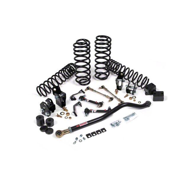 Enhanced Suspension Performance. The JKS Manufacturing 2.50-Inch J-Venture Suspension Lift Kit with Shock Relocation Brackets is designed to elevate both the stance and handling of your vehicle. With a 2.5-inch lift, this suspension system increases ground clearance, enabling the use of larger wheels and tires while enhancing off-road capabilities. It delivers a smoother ride and sharper handling whether you're cruising pavement or conquering trails.