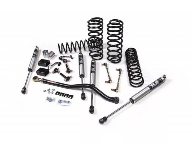 Includes FOX Shocks. The 2 front and 2 rear FOX 2.0 Performance Series IFP shocks are designed to improve your Jeep’s performance by enhancing its control and road damping capabilities. Each shock is also built with a 2-inch metal impact 6061-T6 aluminum body, a clear-anodized coating, and a superior internal floating piston, so they’re more than capable of withstanding the most challenging off-road environments.
