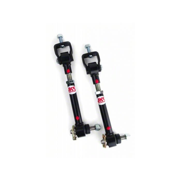 Improved Driving. Cruise smoother through streets and dirt roads with this JKS Manufacturing Quicker Disconnect Sway Bar Links for 0 to 2-Inch Lift on your Jeep Wrangler. Expertly engineered, this assembly offers reinforcing to your axles and maintains their optimal operating angles, resulting in 30% more articulation and better road performance.