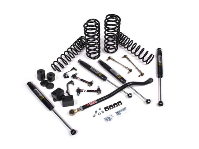 Increased Ground Clearance. The 3.5-Inch lift J-Venture Heavy Duty Rate Coil Suspension Lift Kit is designed to provide increased ground and tire clearance, making it ideal for right-hand-drive 4-Door JK Wranglers. It offers a balanced capability for both on and off-road adventures, ensuring you can explore diverse terrains with confidence.