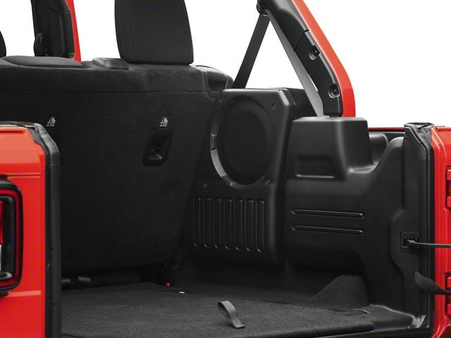 Space-Saving Subwoofer. If you’re looking for a subwoofer that provides excellent bass while also saving cargo space, then the JL Passenger Side Audio Stealthbox is just what you need. This subwoofer enclosure features a slim design that mounts in a seldom-used area in your Wrangler’s cargo compartment, enabling you to make the most of this area. More importantly, this enclosure is designed to fully complement its included subwoofer so you still get the maximum chest-pounding bass that you want.