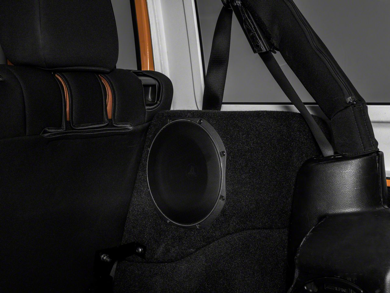 Compact Audio System Upgrade. Experience an enhanced audio quality by adding this JL Audio Passenger Side Stealthbox Subwoofer with Cargo Area Enclosure on your JK. This audio system features a low-profile, thinline subwoofer technology that provides a more powerful bass quality. It fittingly hides in the cargo area in a removable panel without taking up much space.