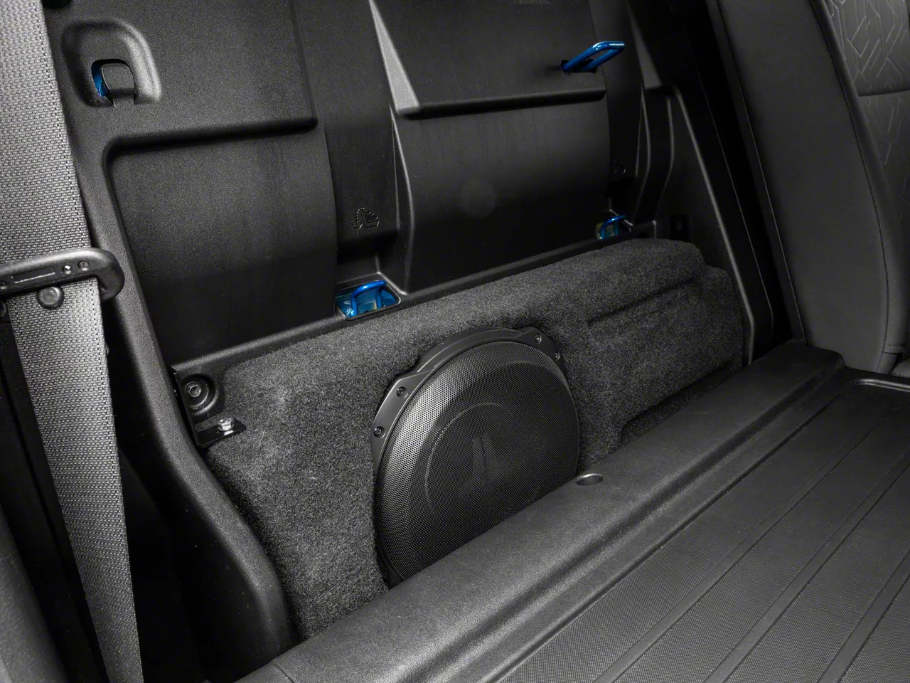 Straightforward Installation. This subwoofer is easy to install. It installs in the storage pocket behind the rear passenger side seat. Please note that factory amplifiers and woofers need to be relocated.
