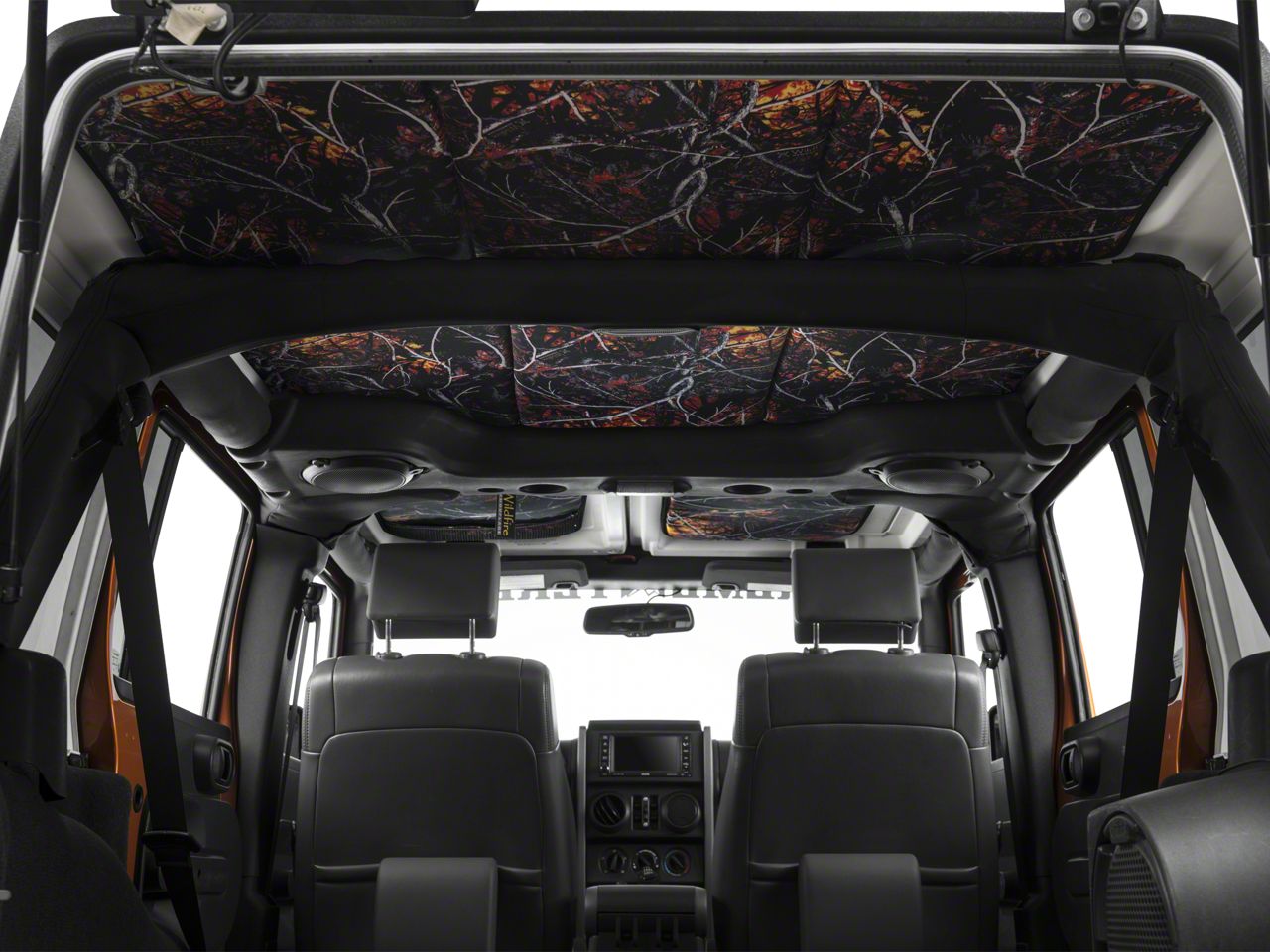 Make a Statement. Insulate your 2007-2018 Wrangler's hardtop with the J Tops USA Headliner. This wildfire camo headliner kit features a unique, 4 layer design that will help insulate your top from harsh exterior temperatures, as well as hold in your a/c or heater's hard work in creating a comfortable in cab climate. It will even help to minimize exterior noises for a more satisfying and conversation worthy ride. Custom fit for your hard top, this headliner kit installs easily without top removal and even features a built-in zippered pocket over the driver seat that is perfect for storing your trail permits or insurance documents.