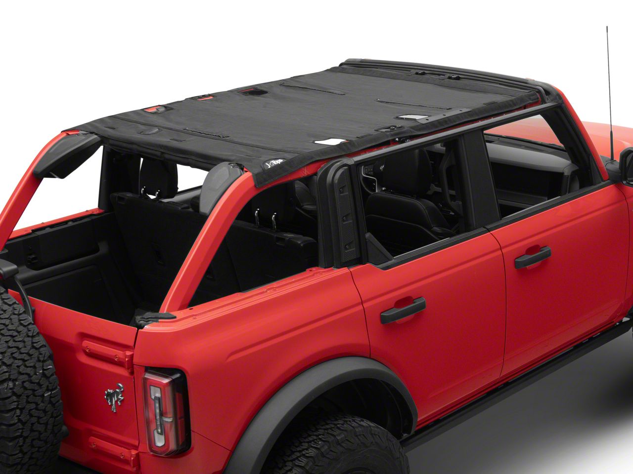 Application. The JTopsUSA Full Mesh Top Bimini Sunshade fits 2021-2026 Bronco 4-Door models with Factory Soft or Hard Top.