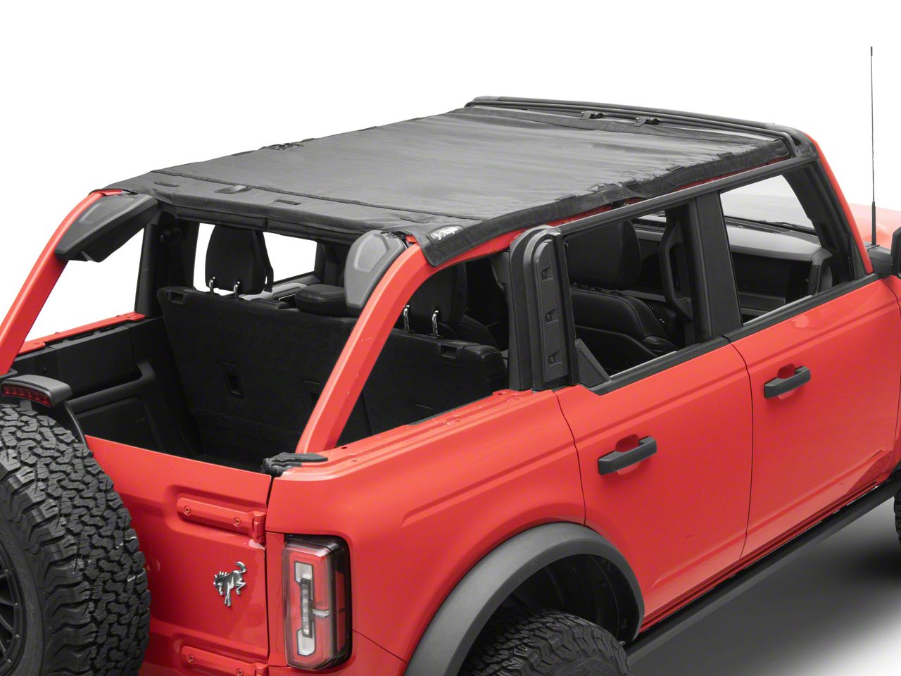 Application. The JTopsUSA Full Mesh Top Bimini Sunshade fits 2021-2026 Bronco 4-Door models with Factory Soft Top.