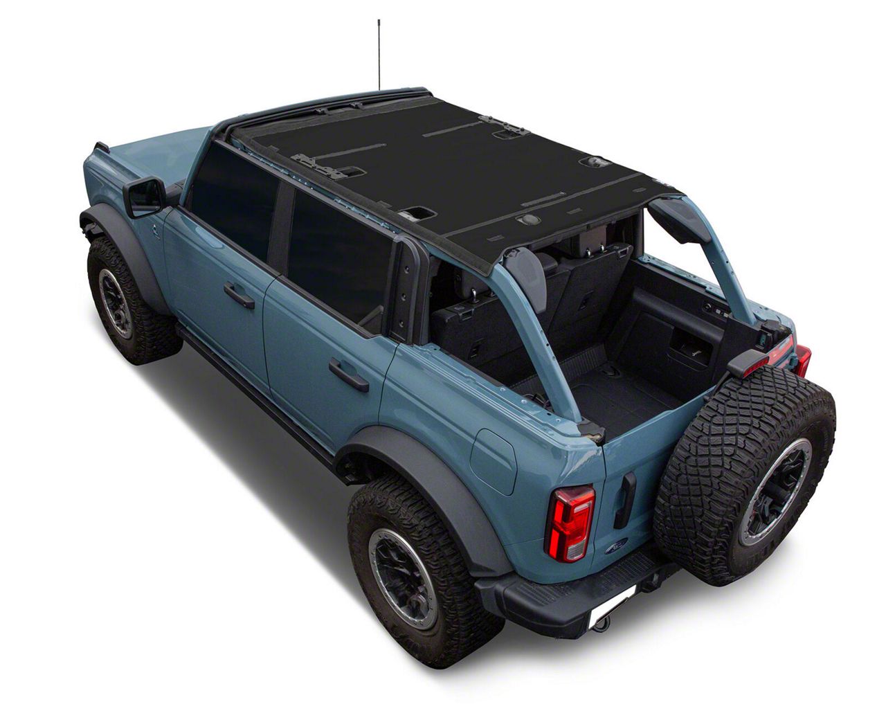 Application. This JTopsUSA Full Mesh Top Bimini Sunshade fits all 2021-2026 Bronco 4-Door Models with Factory Hard Top, Excluding Raptor.