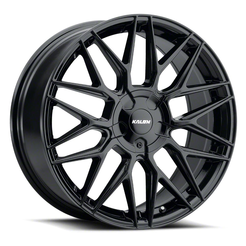The 20x8.5 Kalon Blitz Gloss Black Wheel; 20x8.5; 38mm Offset is completed in a high-quality gloss black finish, which will be sure to turn heads. For added durability and appearance, there is a durable clear coat that withstands the rigors of the road.