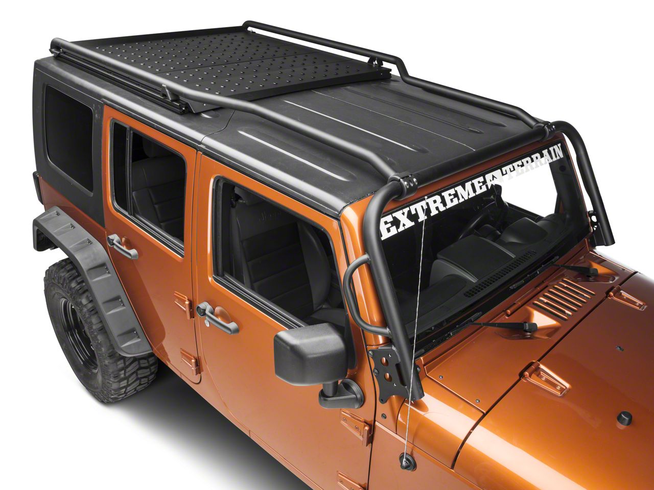 Tough and Expandable. The front hoop in this kit is made from strong, 2-inch diameter steel tubing. It offers unparalleled protection for your windshield assembly and provides a great attachment point for optional grab rails, standoff brackets and light mounts. The front-to-back rails are formed of 1-5/8-inch tubing with CNC-machined clamps and provide great attachment points for other accessories. The MOD-RAK itself is made of sturdy, modular aluminum panels. All parts are finished with a special blend of zinc-epoxy primer and black powdercoating. This system will provide years of trouble-free use and will look good while doing it.
