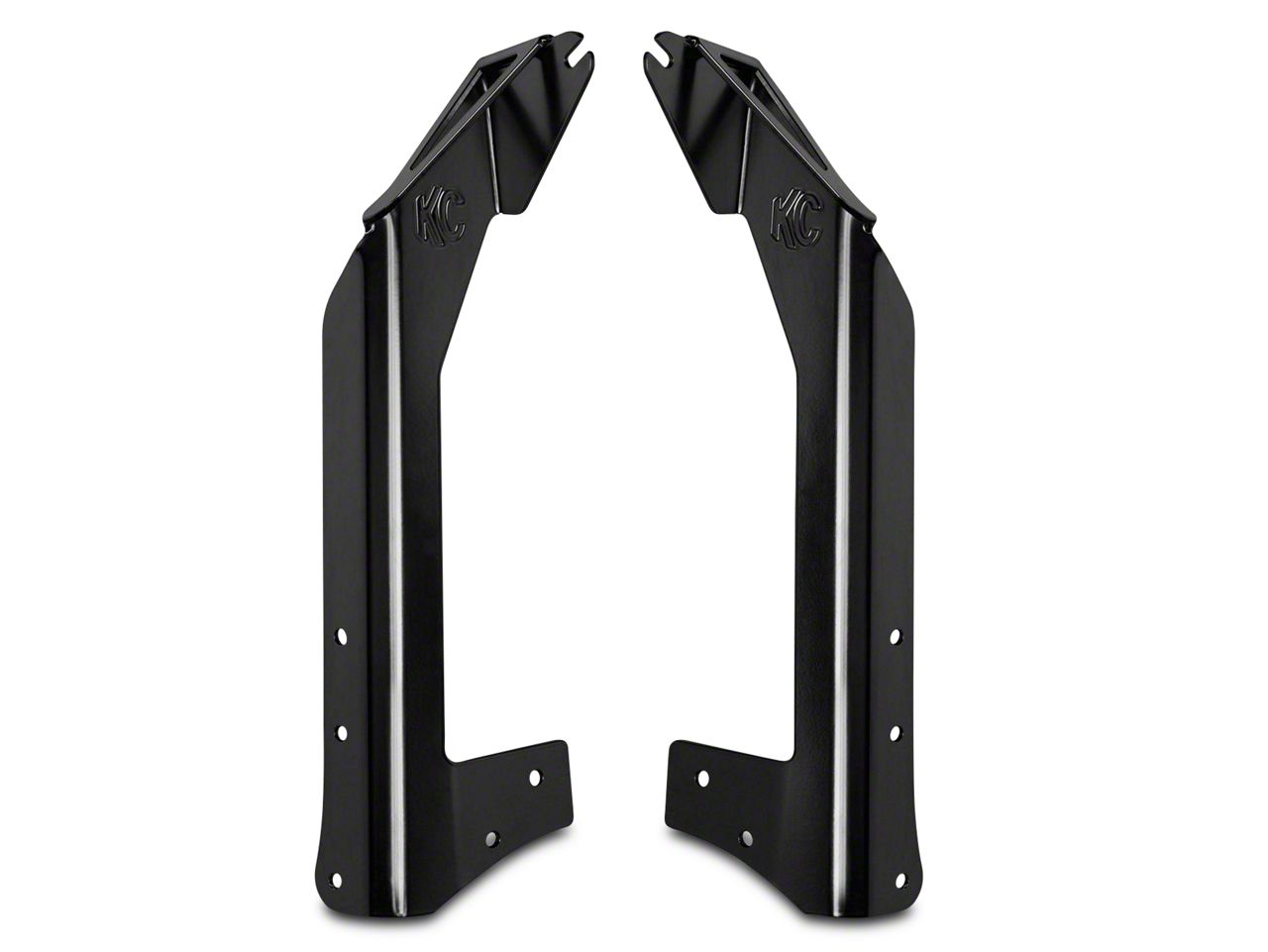 Proper Mounting. This set of LED Light Bar Mounting Brackets from KC HiLiTES is designed to utilize your factory attachment points to deliver a sturdy overhead lighting solution for your Jeep Wrangler JK. Light bars sold separately, these brackets will help ensure you get sufficient light in front and around your Jeep Wrangler. Crafted to easily mount a 50" LED Pro6 or C-Series LED Light Bar, you can count on these mounts to keep your light secure no matter the terrain.