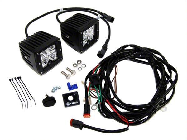 Straightforward Installation. These 3-inch LED lights have a 90-degree flood beam pattern and use a compact design that makes them ideal for A-pillar, grille, or bumper mounting and can also be used for increased visibility when reversing. The kit comes with a pair of lights, bolt-on mounting brackets, and a complete wiring harness. The housings are cast aluminum, holding 4 LEDs in each for a 485-foot beam.