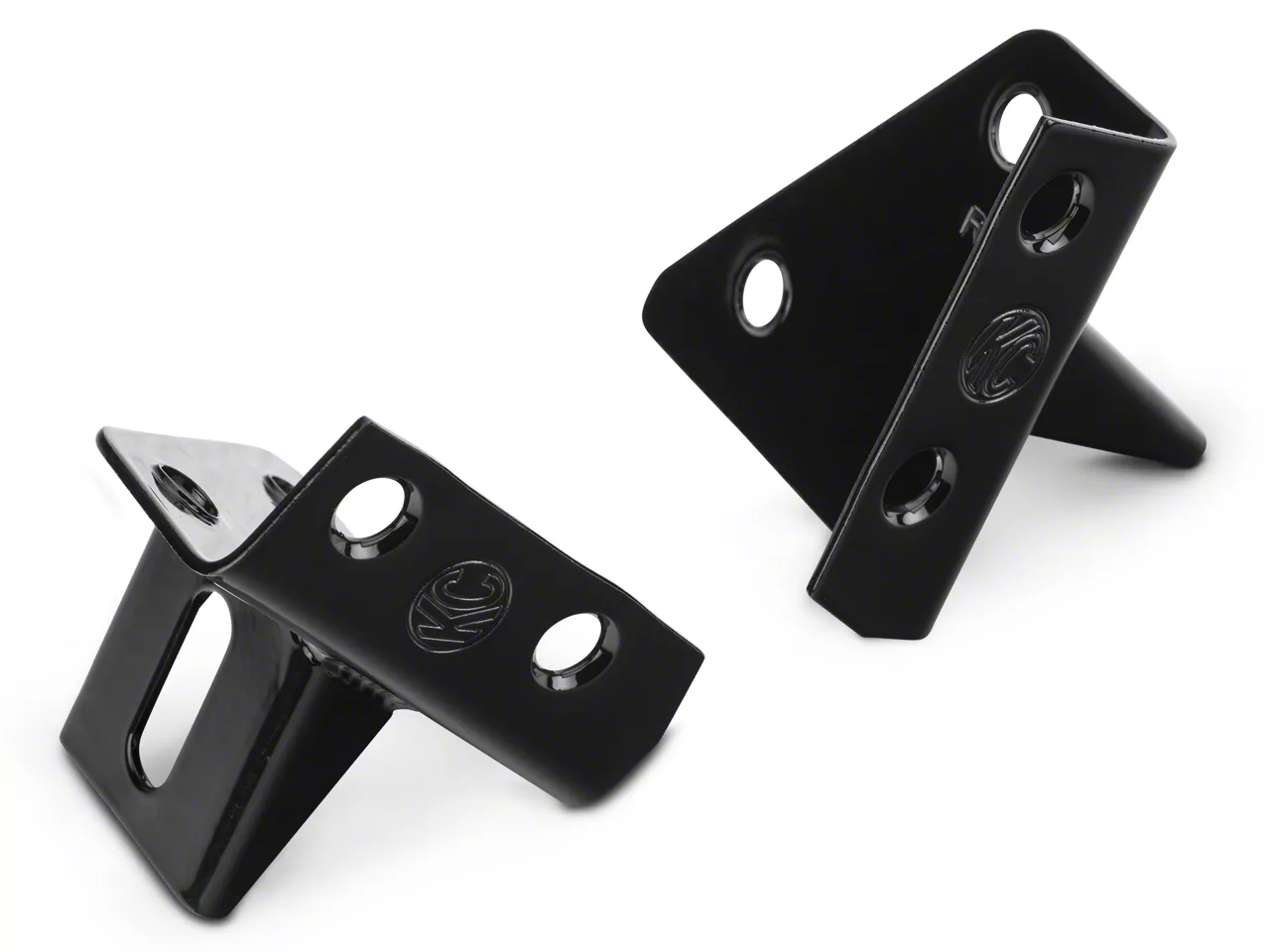 Built for Durability. The KC HiLites Jeep Light Mount Brackets are manufactured out of 11-gauge steel (close to 1/8 inch thick). The steel is coated in gloss black powder-coat for both style, matching the black color of many Jeep trim pieces, and to ward off rust and corrosion. Supplied with all necessary hardware, these brackets bolt on quickly to factory bolt locations. The part comes with a KC Adventure Further Guarantee from the manufacturer, and is designed in the USA.