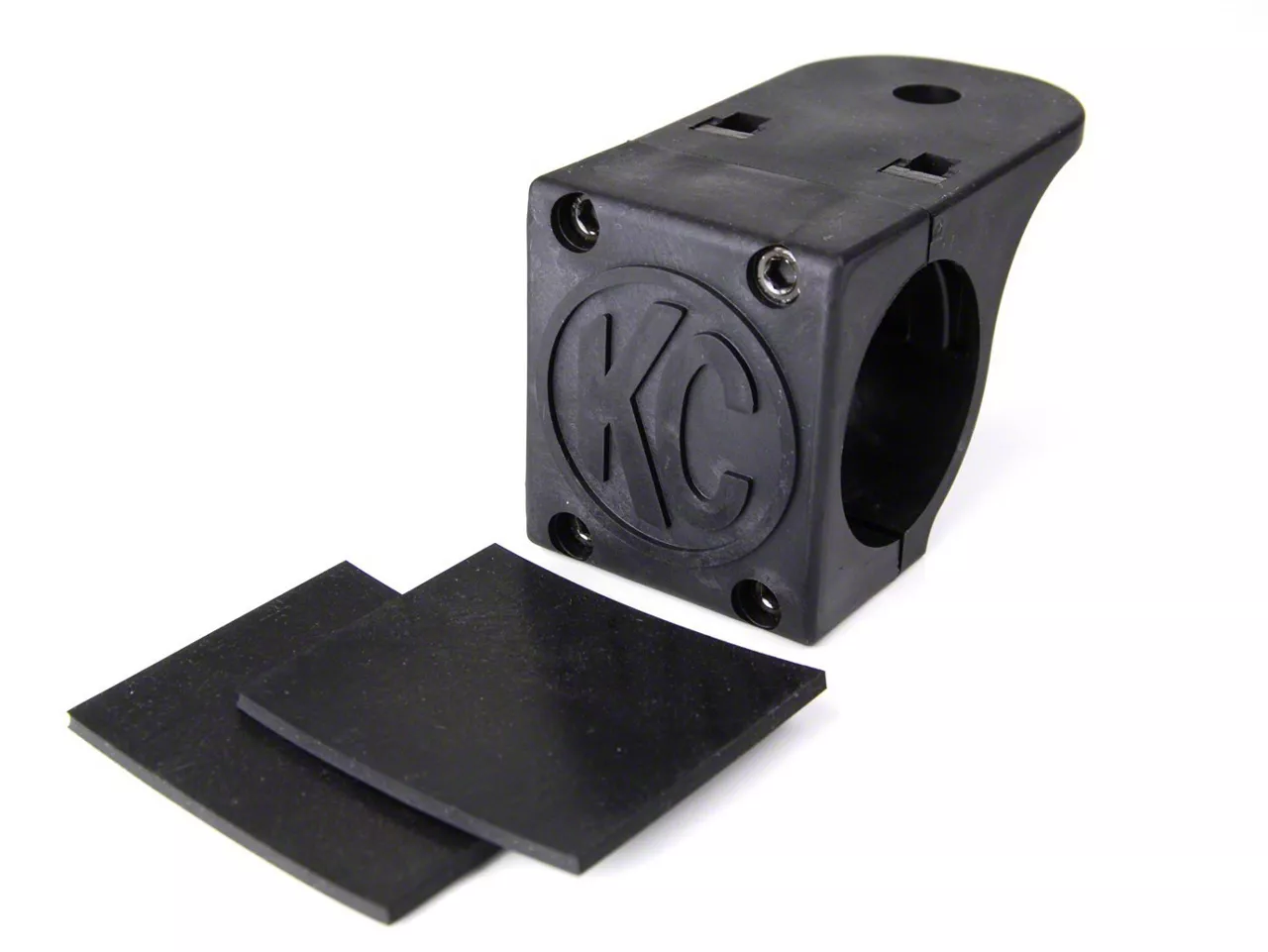 Absolute Light-Tube Mounts. Fitting and securing KC HiLiTES light tubes is now easy; thanks to the newly manufactured KC HiLiTES Light Mounting Clamp for 1.75-2" Tube. This clamp mounting brackets features a bold black powder coat w/ "KC" logo embossed on the front side for an improved appearance. Additionally, the package includes rubber adjustment shims, allowing you to modify the diameter to accommodate different tubes.
