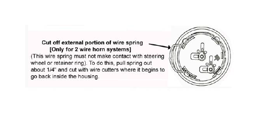 FOR TWO (2) WIRE HORN SYSTEMS (MANY FORD VEHICLES)- The horn button must not be grounded and the modification shown below must be done, then simply attach one wire lead to each terminal on back of horn button.