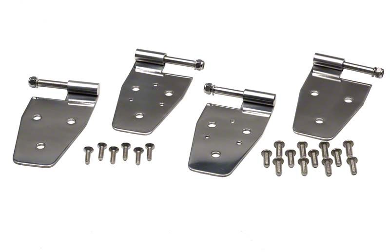 Restore Door Hinge Aesthetics and Strength. Wear and tear will affect your Jeep Wrangler’s door hinges. They lose strength and durability over time, and the finish may start cracking and peeling off. The Jeep Wrangler Door Hinge Set of 4 by Kentrol is an excellent option if you need an upgrade. Opting for the polished stainless steel mirror finish will give your vehicle a mean look that should last much longer than your average hinge coating.