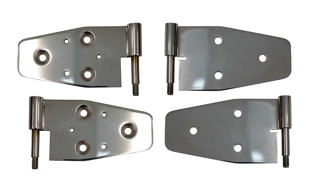 Strength and Durability. This door hinge set is made from long-lasting and reliable T-304 stainless steel, which won’t rust after being exposed to rain and snow. What’s more, the Jeep Wrangler Door Hinges have a modern look, thanks to the polished mirror finish.
