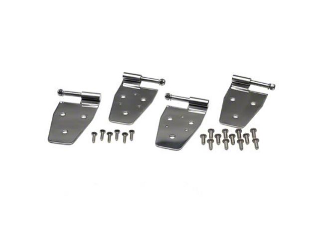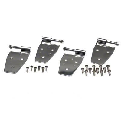 An Easy Door Hinge Upgrade. Add an elegant, mirror-like finish with the polished stainless steel Jeep Wrangler Door Hinge Set. Not only is the set compatible with factory mounting points for 1/2 doors, but it also has a mirror-mounting location for factory mirrors. These hinges are a long-lasting upgrade for the full steel doors of the 1987-1995 YJ Wrangler.
