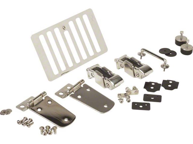 Well-Made Hood Complement. If you want to finish your Jeep Wrangler hood, look no further than this high-quality hood dress-up kit. It comes with all necessary components to make your vehicle more functional, such as the hinge, hood catch, footman loop, and vent. The kit secures the hood to your car, keeping it from detaching during bumpy rides and extracting excess heat from the engine.
