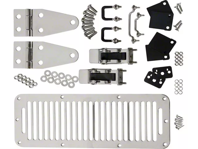 Spruce Up the Hood. With Kentrol’s, Jeep Wrangler Hood Kit with TJ Style Hood Catch you have everything you need to spruce up your Jeep’s hood with an array of useful replacement parts. With each part featuring a sleek polished finish, this kit comes with hood hinges and vents. It also includes a TJ-style hood catch, along with a footman loop and windshield tie-down kit. If your Jeep’s front end has seen better days, this kit helps you to bring it into the 21st century without spending a ton of money.