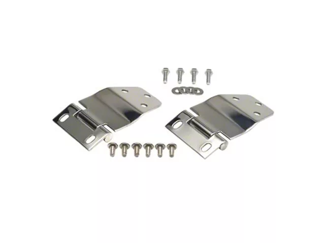 Premium Liftgate Hinge. The Liftgate Hinge (Polished Stainless Steel, Pair) is designed to replace old, broken, or corroded OE hinges on your Jeep CJ7. It restores both the look and functionality of your vehicle's liftgate, making it ideal for repair and restoration projects. This hinge is a reliable, OEM-quality replacement that integrates seamlessly with your factory parts.