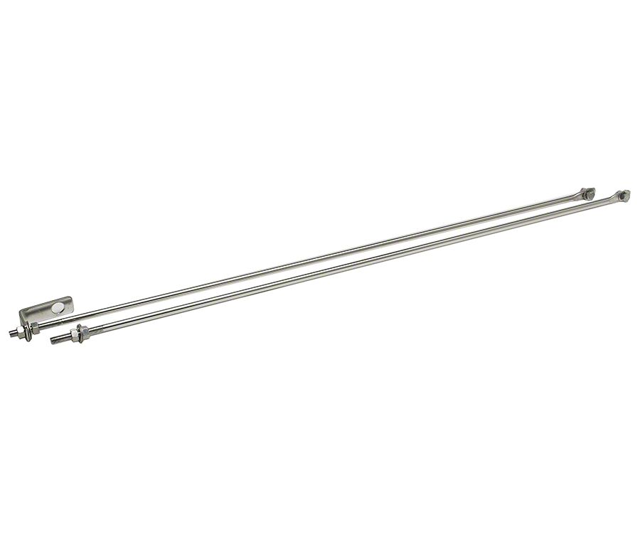 Durable Radiator Support. The Strut Rod Kit; Polished Stainless Steel is designed to securely mount the radiator within the engine bay, ensuring optimal engine temperature control. It serves as a reliable replacement part engineered to maintain proper radiator positioning under varied terrain and driving conditions.