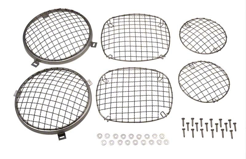 Simple Mesh Light Guards. Protect the headlights, parking lights, and tail lights on your Jeep using these headlight guards. This Jeep headlight guard kit includes six different mesh guards that install over existing lights to make them more durable. The guards are designed to stop large objects and help reduce impacts and damage during everyday driving and off-roading.