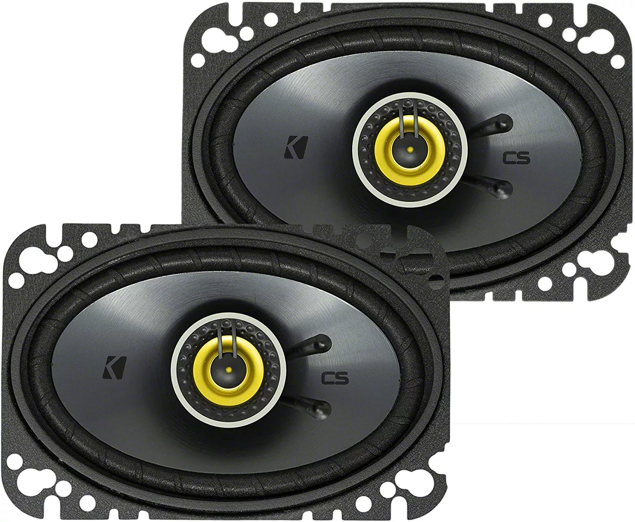 Off-Road Protection. Looking for a high-quality speaker upgrade for your Jeep Wrangler? The Kicker CS-Series 4x6-Inch Coaxial Speakers are designed to deliver exceptional sound quality, clarity, and power handling. The speakers feature a polypropylene woofer and a balanced dome tweeter, which work together to produce rich, well-balanced sound. The speakers also have a slim profile design that fits perfectly into your vehicle's factory speaker locations. The speakers are also designed with a low-impedance, high-sensitivity design that ensures maximum output with minimal input power.