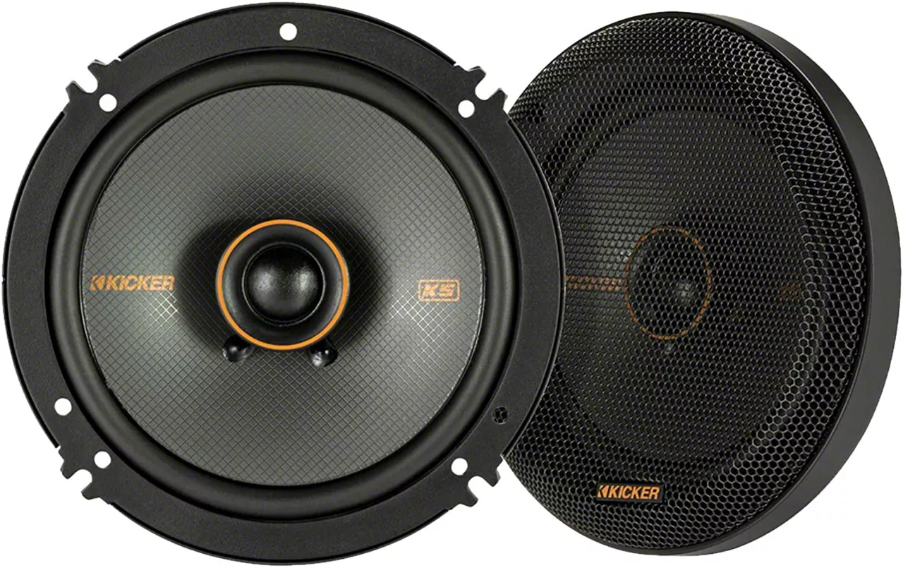 Exceptional Low-Profile Speakers. Upgrade your car's sound system with the Kicker KS-Series 6.50-Inch Coaxial Speakers. With a power handling of up to 100 watts RMS and a frequency response of 40Hz-21kHz, these speakers deliver clear, balanced sound at any volume. The durable polypropylene woofer and silk dome tweeter provide excellent performance, while the slim profile design makes for easy installation in most vehicles. Experience a new level of audio quality and clarity with the Kicker KS-Series 6.50-Inch Coaxial Speakers.