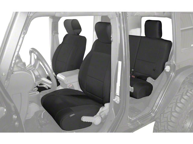 Application. These Black King 4WD Neoprene Front and Rear Seat Covers are designed to fit 2008-2012 Jeep Wrangler JK 2-Door models.