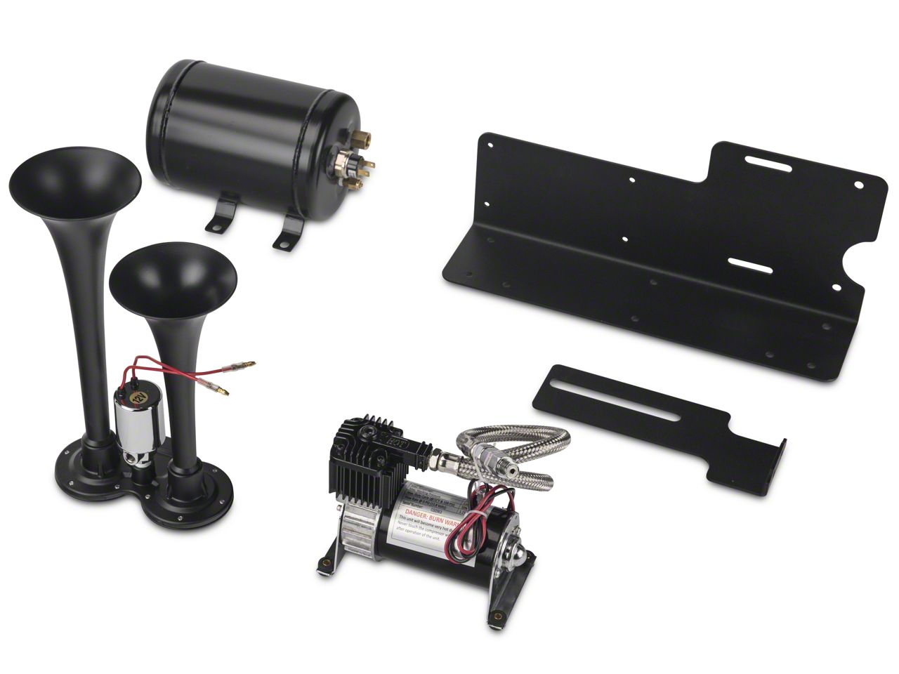Quality Components. This kit includes necessary for installation for a practical and easy upgrade, including hardware and wiring. It comes with durable, made in the USA mounting brackets designed to bolt directly to existing factory holes. Each horn is finished in a rugged black finish to match your Wrangler's personalized look.