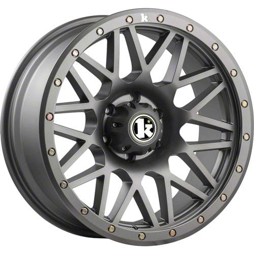 Klutch KT02 Matte Gunmetal Graphite 6-Lug Wheel; 20x12; -49mm Offset. The Klutch KT02 Matte Gunmetal Graphite 6-Lug Wheel; 20x12; -49mm Offset features a sleek and modern design that enhances the overall aesthetic of any vehicle. Its brushed gunmetal finish adds a touch of sophistication and complements various vehicle styles. This wheel's premium construction ensures durability and a robust appearance.