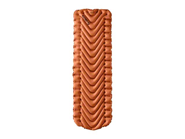 Four Season Camping. Made for a universal fit, this Klymit Insulated Static V Lite ECO Sleeping Pad comes in a hazard orange finish. Built from environmentally sustainable BlueSign-approved fabric with synthetic insulation, this sleeping pad is designed for 4-season use and gives you a safe and comfortable way to spend your nights during your off-road adventures.